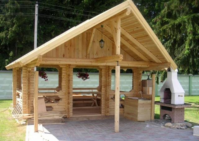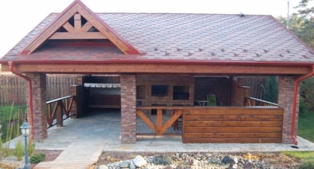 Nếu có nhiều không gian trống trong nước, thì lựa chọn tốt nhất là một cấu trúc đa giác có kích thước 3x3 m. Bạn có thể chọn một tòa nhà hình chữ nhật có diện tích từ 6 đến 12 m.2... Một nơi nghỉ ngơi như vậy rất thích hợp cho một công ty lớn. Bên trong, ngoài đồ đạc, một bếp nấu được lắp đặt.