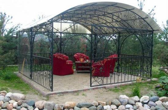 Ở phía sau là quần thể kiến trúc của trang web, nhưng sắc thái này cũng cần được tính đến. Ví dụ, trong một khu vườn nhỏ hoặc gần một tòa nhà nhỏ, một vọng lâu khổng lồ sẽ trông rất lạ. Nếu bạn thực sự muốn tổ chức một nơi nghỉ ngơi lớn, tốt hơn là nên làm cho tòa nhà mở và sử dụng polycarbonate cho mái nhà. Một thiết kế như vậy gần như không thể nhìn thấy từ xa, và nó sẽ không làm quá tải không gian.