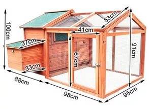 Đối với kích thước của chuồng gia cầm, nhà có diện tích 2 m2 được làm với kích thước 1x2 hoặc 1,5x1,5 m. Đối với mười con gà, các kích thước này được nhân đôi.