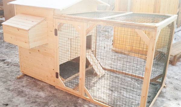 Có thể làm lối đi cho 5 con gà với kích thước 2x2 hoặc 1,5x2 m, nếu có thêm không gian trống trong nước, một chuồng chim lớn được gắn vào chuồng nuôi gia cầm cố định. Nó sẽ chỉ có lợi cho những con gà. Có một lối ra từ ngôi nhà đến chuồng chim. Hơn nữa, nên bố trí chuồng gà sao cho cửa quay về hướng Nam.