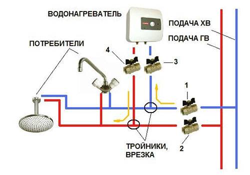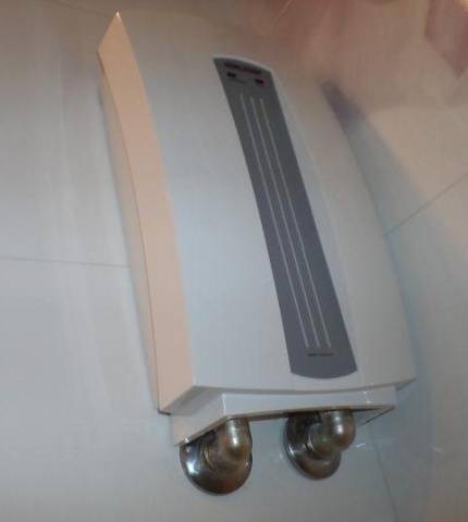 Máy nước nóng loại áp suất hoạt động trên một nguyên tắc khác. Các thiết bị ở đầu vào và đầu ra không có thiết bị ngắt. Quá trình lắp đặt diễn ra bằng cách lắp vào nguồn cấp nước. Thông thường, một bộ gia nhiệt áp suất được lắp đặt trước vòi của bồn rửa, bồn tắm hoặc chậu rửa mặt. Được phép lắp đặt thiết bị trên một số điểm nước. Điều chính là hệ thống dây điện của hệ thống cấp nước cho phép bạn làm điều này.