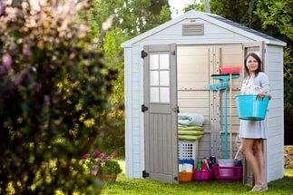 - Nhà kho bằng nhựa rất thuận tiện trong việc bảo trì. Có thể dễ dàng làm sạch cấu trúc bằng nước từ vòi. Các vết bẩn chỉ được làm sạch bằng bột giặt.