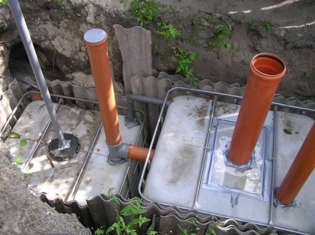 Khi các khoang bê tông đạt cường độ khoảng 1 tháng nữa, họ bắt đầu trang bị thêm cho bể tự hoại. Việc lắp đặt ống tràn, nắp và tất cả các công việc khác giống như đối với các khoang làm bằng bê tông cốt thép.