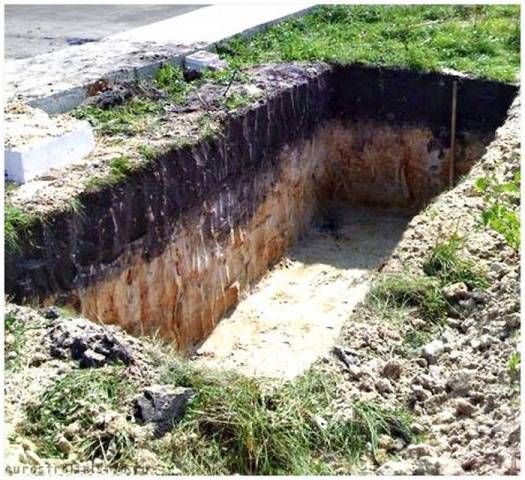 Sau khi chọn vị trí của bể tự hoại tại ngôi nhà mùa hè, họ bắt đầu công việc đào bới. Tốt hơn là đào bằng tay với một cái xẻng. Điều này sẽ khó thực hiện hơn, nhưng cái hố sẽ có những bức tường đồng đều với kích thước cần thiết. Kích thước của hố phụ thuộc vào kích thước của buồng. Trong trường hợp này, một khoản dự trữ được thực hiện để sắp xếp các bức tường phía dưới và bên.