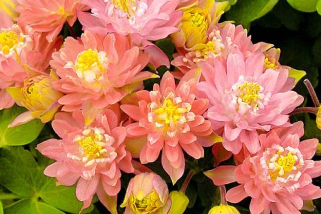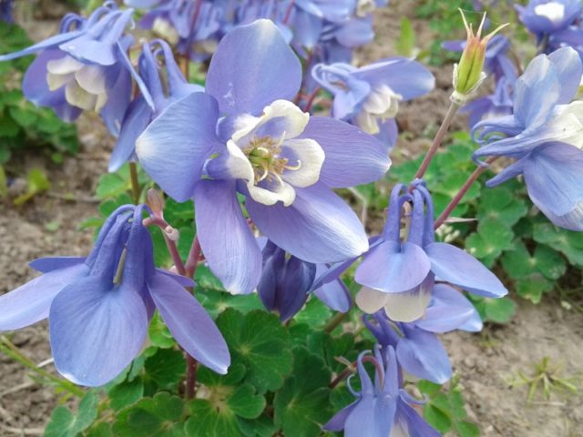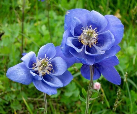 Giống Columbine cao tới 70 cm và có nhiều màu sắc và sắc thái khác nhau - trắng, hồng, xanh, đỏ. Các chồi được thu thập trong các chùm hoa hình chùy; lưu vực bắt đầu có hiệu quả trang trí tối đa vào cuối tháng Năm hoặc vào tháng Sáu.