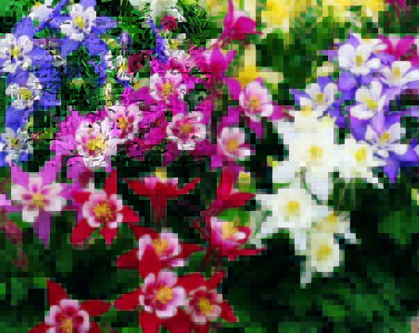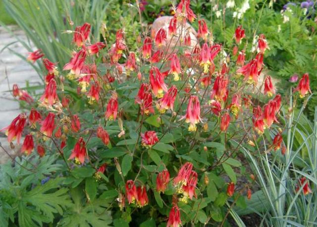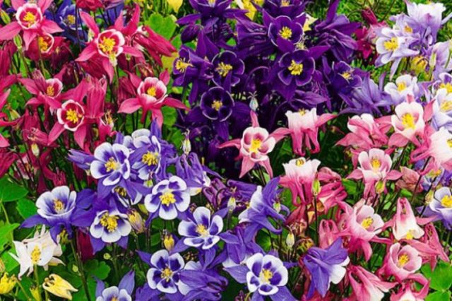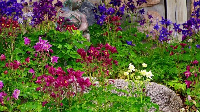 - bảng màu, như được thể hiện trong các bức ảnh về hoa aquilegia trong vườn, cây lâu năm nên được kết hợp với các cây khác và không trông loang lổ so với nền của chúng.