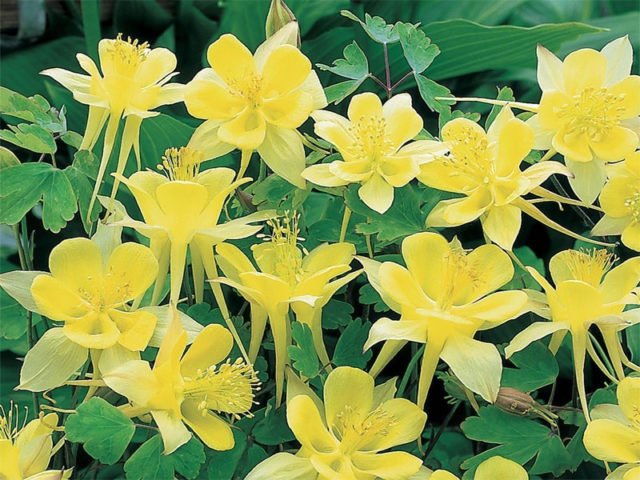 Aquilegia Tinh thể vàng - giống chịu được sương giá, trú đông ở -35 ° С