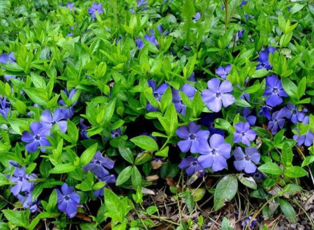 Periwinkle Blue & Gold là loại cây sống trên mặt đất lâu năm cao đến 15-20 cm, có tính trang trí cao nhờ những bông hoa 5 cánh màu xanh nhạt rất thú vị và những chiếc lá vàng với viền xanh. Nó nở hoa 2 lần mỗi mùa - vào tháng Năm và tháng Tám. Trang trí khu vườn bất cứ lúc nào nhờ những tán lá thú vị và khả năng che phủ hoàn toàn đất.