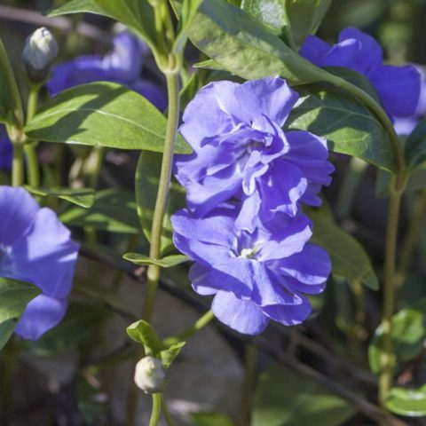 Một trong những giống dừa cạn nhỏ đẹp nhất - "Plena". Ưu điểm chính của nó là hoa kép ngoạn mục có bảng màu xanh tím, đường kính đạt 3 cm. Giống "Plena" nở hoa chủ động vào tháng 4-5, thụ động - từ tháng 6 đến tháng 9.