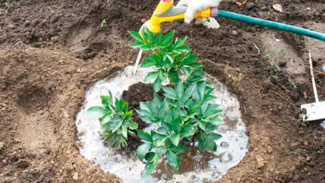Vào thời kỳ xuân hè, ba lần tưới là đủ cho một bụi hoa. Chúng được đưa vào, có tính đến các giai đoạn quan trọng của mùa sinh trưởng: thức tỉnh và tăng trưởng sau mùa đông, đẻ chồi, ra hoa.