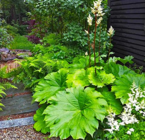 Darmera tuyến giáp là một loài thực vật thường xanh khiêm tốn. Nó thường được sử dụng trong thiết kế cảnh quan. Những chiếc lá khổng lồ phù hợp với cây bụi có hoa, cây cối và các loại cây lâu năm khác. Darmera là một loài hoa ưa bóng râm và chịu mùa đông, cho phép nó được trồng trên khắp nước Nga.