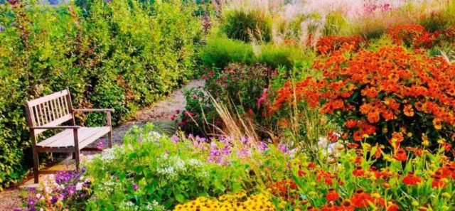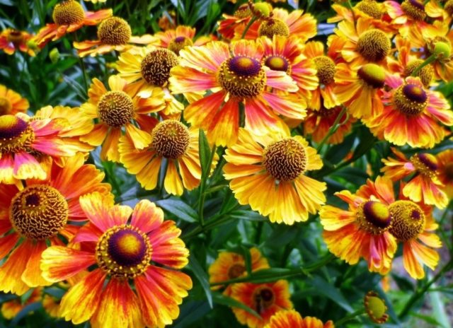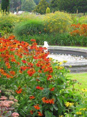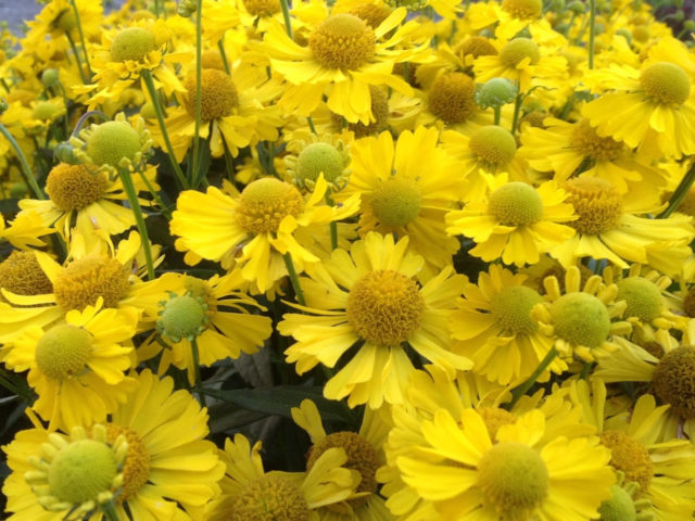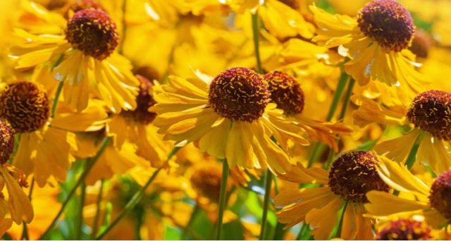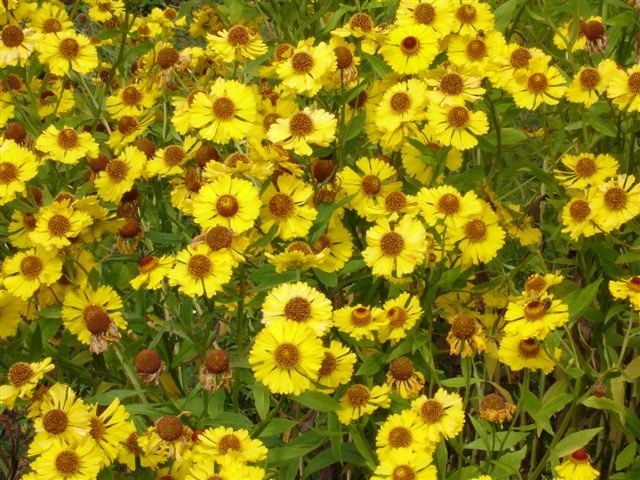 Các loài helenium lâu năm màu vàng trông rất tuyệt khi kết hợp với hoa màu tím, xanh lam, đỏ. Bên cạnh có thể trồng cây xô thơm, monarda, hoa cúc.