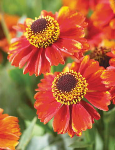 Giống helenium lâu năm Salsa (Salsa) thuộc loại nhỏ, cây cao 0,4-0,5 m, cánh hoa màu đỏ cam, đĩa trung tâm màu nâu. Thời gian ra hoa từ tháng 7-9.