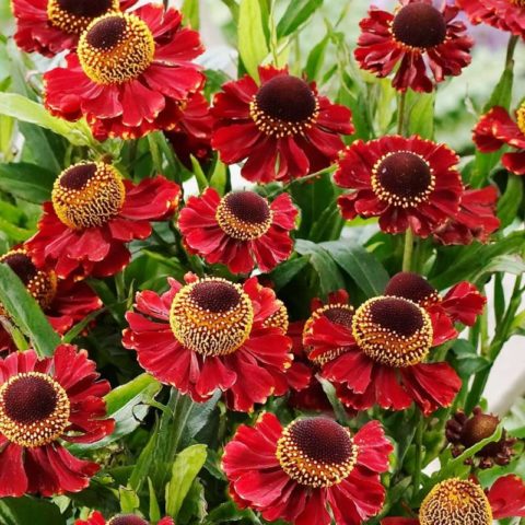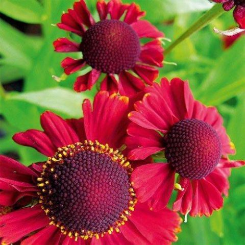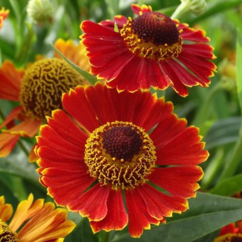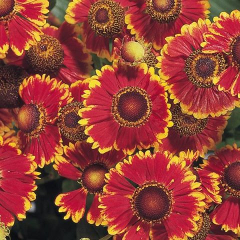 Loại helenium lâu năm màu đỏ này thường được gọi là Helena Red. Cây ra hoa nhiều từ cuối tháng 7 đến giữa tháng 9, hình giỏ vừa phải, 3-5 cm, chùm hoa màu nâu đỏ viền vàng, ống có màu sẫm hơn. Chiều cao trung bình khoảng 1,1 m.