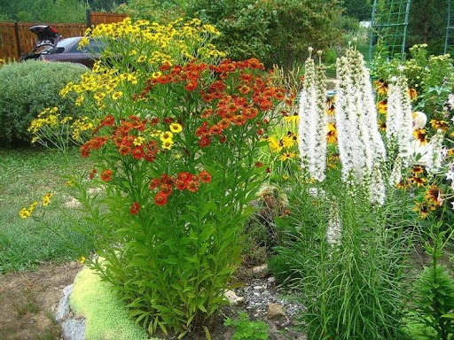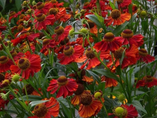 - những bụi cây cao của helenium mùa thu che lấp hoàn hảo và che phủ các hàng rào hoặc các phần không đẹp mắt của các tòa nhà phụ;