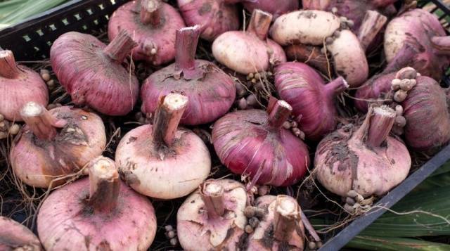 Lời khuyên! Để ngăn ngừa dịch bệnh, những tép tỏi đã bóc vỏ, có đặc tính kháng khuẩn và kháng nấm, được cho vào túi cùng với củ giống trong quá trình bảo quản.
