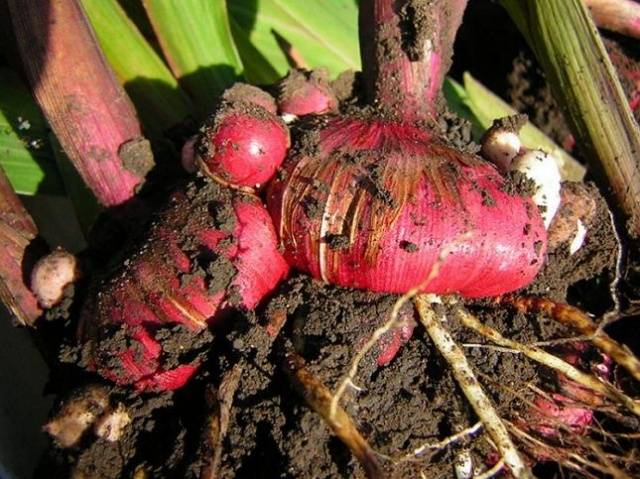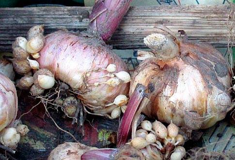 Ở những củ non mọc từ con không cắt bỏ rễ mà chỉ cắt ngắn để loại bỏ chỉ khi mùa xuân chuẩn bị trồng.