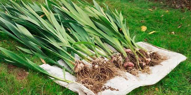 Đào các bụi hoa lay ơn, đồng thời kiểm tra nhãn có ghi thông tin về giống đã được bảo quản như thế nào, và kiểm tra sự phù hợp của giống theo kế hoạch trồng vụ xuân. Cây được lấy ra khỏi mặt đất một cách cẩn thận và lắc nhẹ khỏi mặt đất và trẻ em trên polyetylen hoặc bạt. Các nút chai bị bệnh và hư hỏng ngay lập tức được đặt sang một bên để đốt chúng sau này. Đồng thời, tất cả các con đều được chọn lọc kỹ càng và bày ra những củ lớn theo giống.