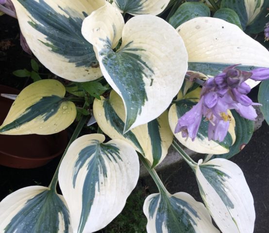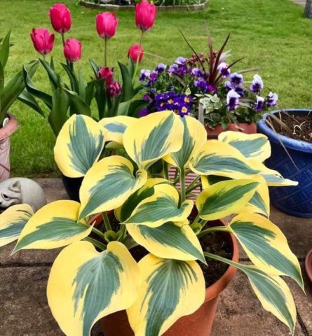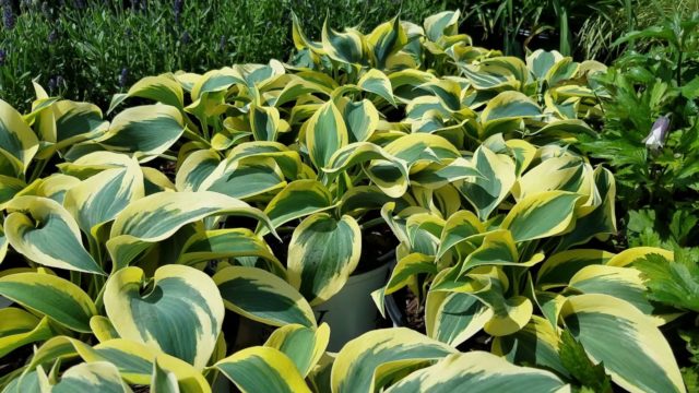 Hosta Autumn Frost có thể được trồng trong các thùng lớn, sự lộng lẫy của cây trưởng thành không cho phép bạn nhìn thấy chúng từ trên cao
