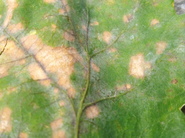 Với bệnh phyllostictosis, các đốm nâu xuất hiện trên lá, sau đó bao phủ toàn bộ khối xanh