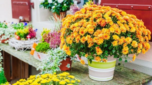 Một chậu hoa cúc trông lễ hội cả trong phòng và ngoài đường.