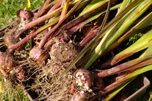 Dưới đất, củ bị bão hòa ẩm, bắt đầu bị bệnh nhiễm nấm, thối rữa và xấu đi. Bởi vì điều này, mỗi năm có đào củ gladioli để trồng lại chúng vào mùa xuân ở chỗ cũ hoặc chỗ khác trong vườn.