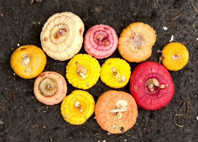- Bây giờ bạn nên tách những củ ấu và củ chưa chín hàng năm. Các con được bảo quản giống như các loại củ còn lại. Khuyến nghị duy nhất: nếu có thể, tốt hơn là tạo điều kiện hơi khác cho củ, với nhiệt độ khoảng 5 độ và độ ẩm 85-90%. Những con giun không có thời gian để chín khó có thể sống sót đến mùa xuân nếu được bảo quản cùng với phần còn lại của gladioli. Hành tây như vậy được bảo quản tốt nhất trong parafin. Bạn chỉ cần đun chảy một cây nến, dùng tay túm lấy cuống hoa lay ơn rồi nhúng vào dung dịch nước trong vài giây. Sau đó nhanh chóng cho vào nước lạnh và cho vào hộp bìa cứng hoặc gỗ.