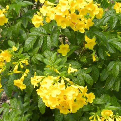 - Flamenco. Giống này được phân biệt bằng các chồi leo mà trên đó các rễ hút nằm đều nhau. Chiều dài của chúng đạt 8-10 m, mọc hàng năm 1,0-1,5 m, lá to đến 20 cm, phiến có màu xanh lục đậm, mặt sau có màu sáng. Hoa của giống Kampsis này đạt chiều dài 9 cm, đường kính 5 cm, màu vàng cam tươi sáng.
