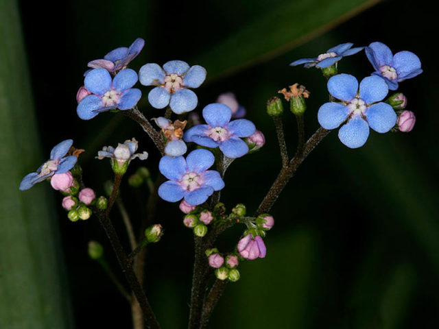Brunner là một loại cây cảnh lâu năm. Nó trông giống như một bụi cây với một thân rễ nhỏ nằm thẳng đứng. Từ nó có thân dài tới 40 cm khởi hành, lá hình trái tim có màu xanh đậm ở mặt trên, mặt sau - màu xám, hơi giống màu đỏ. Chiều dài của chúng khoảng 25 cm, phần ngọn nhọn.