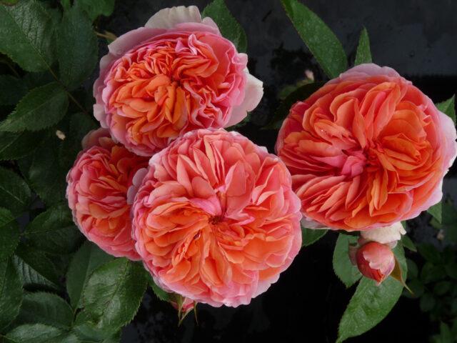 Hoa hồng Park Charles Austin cũng rất tuyệt vời để trồng ở vùng Moscow. Bản thân cây nhỏ gọn, lá dày, với các chồi mọc thẳng, khỏe. Chiều cao của bụi không vượt quá 1,5 m, lá to và dựa trên nền dày đặc đôi hoa mai hoặc màu cam mềm trông rất tuyệt. Hương thơm của chúng rất tinh tế và tăng cường khi nụ nở.