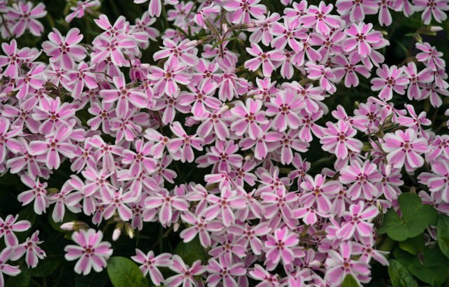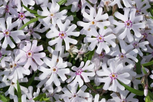 Giống phlox phủ mặt đất có màu sắc khác thường - hoa của nó có màu trắng, nhưng có một sọc rộng màu hồng ở trung tâm của mỗi cánh hoa. Trên mặt đất, Candy Stripes chỉ nhô lên 10 cm, hoa có đường kính nhỏ khoảng 2 cm, nở nhiều và sum suê vào tháng 5.