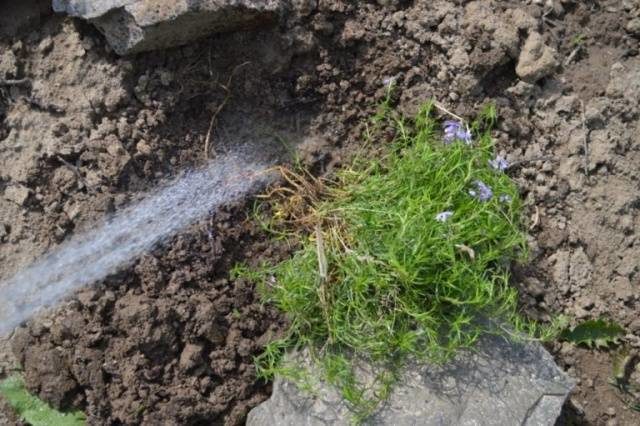 Trước khi trồng, đất cho cây phlox được tưới nước đầy đủ.