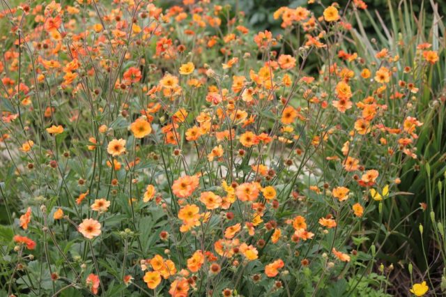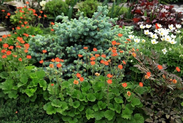 Đối với cách trồng thẳng, tốt hơn là sử dụng gravilat với các sắc thái khác nhau, bạn có thể kết hợp nó với các màu khác