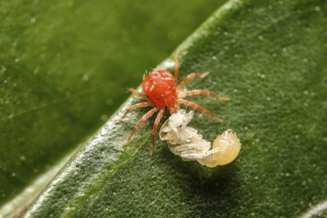Nhện ăn dịch thực vật dẫn đến lá bị khô và chết