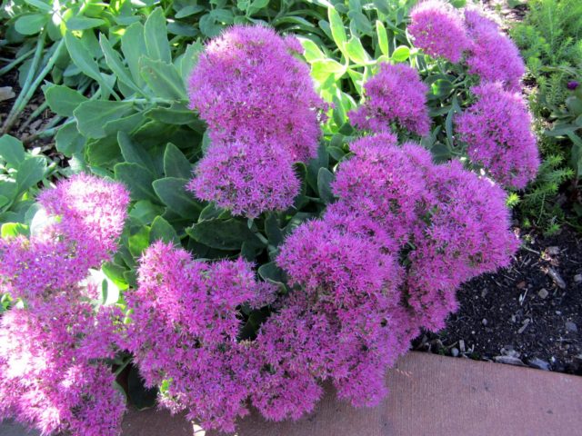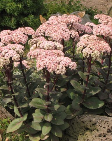 Hoa "Sedum nổi bật" từ giữa tháng 7 đến đợt sương giá đầu tiên (tùy thuộc vào giống). Một bụi cây nhỏ nhỏ được bao phủ bởi những bông hoa nhiều màu, vì vậy các nhà thiết kế cảnh quan thường sử dụng nó để tạo điểm nhấn tươi sáng trong bố cục khu vườn.