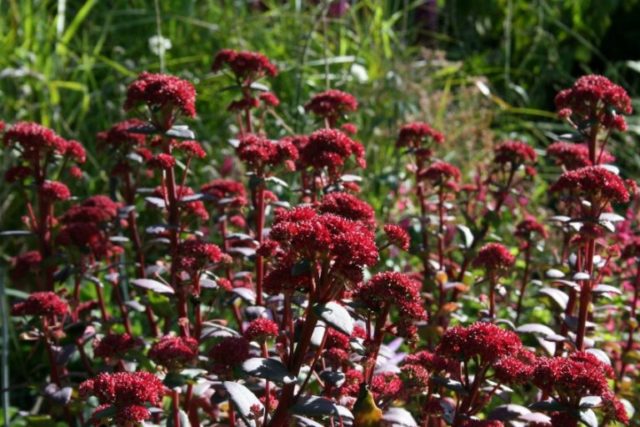 Phổ lai Sedum Red Cauli - nó là những chồi mọc thẳng cứng với lá màu xanh xám và những chùm chùm hoa có chồi nhỏ màu đỏ tươi, được thu hái trong những chiếc khiên. Hoa "Sedum nổi bật" vào giữa mùa hè (tháng 7). Mặc dù ưa thích những nơi nhiều nắng, cây lai cho thấy sự sinh trưởng và phát triển tốt ngay cả trong bóng râm một phần.