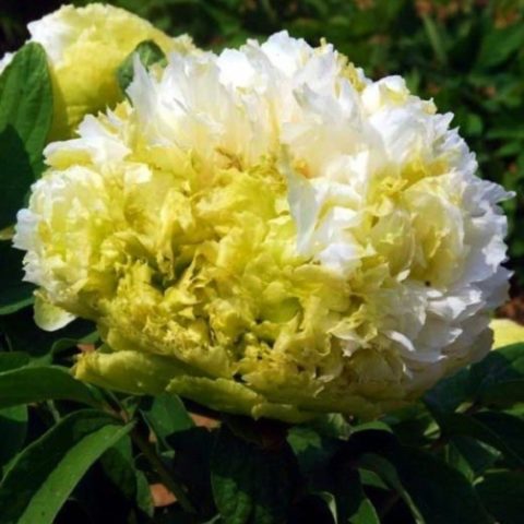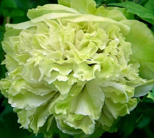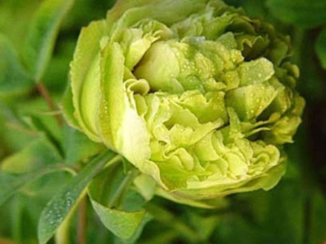 Giống đậu xanh duyên dáng được đặc trưng bởi những bụi cây nhỏ gọn cao khoảng 90 cm, các cánh hoa có mép gấp nếp và có màu xanh lục nhạt, hiếm gặp đối với mẫu đơn (bạn có thể thấy điều này trong ảnh bên dưới). Trong thời kỳ ra hoa, cây bụi tỏa ra một hương thơm tinh tế. Đường kính của hoa là 17 cm.