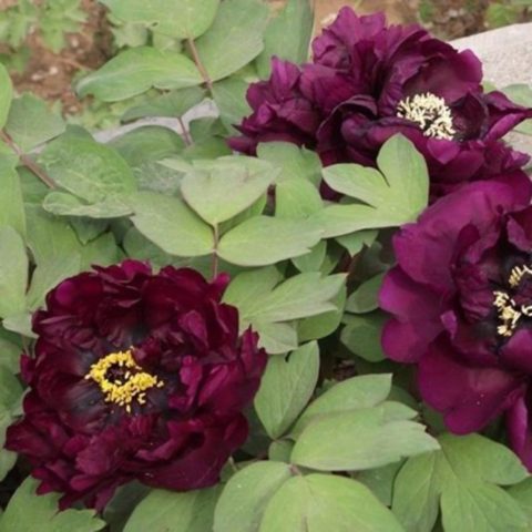 Sự đa dạng này nổi bật đáng chú ý với những cánh hoa có màu đỏ tía đậm với màu hoa cà, có hình dạng màu hồng (bạn có thể thấy rõ điều này trong ảnh). Lá có màu xanh lục. Chiều cao của bụi ở giống Deep Blue Sea (Da Zong Zi) đạt 1,5 m, đường kính của hoa là 18 cm.
