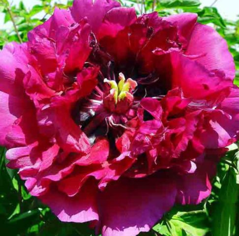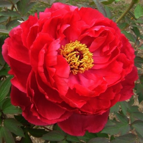 Scarlet Sail được phân biệt bởi sự ra hoa sớm và các chồi trên cây sẽ mở ra vào cuối tháng 4 - đầu tháng 5. Màu sắc của cánh hoa là màu tím đậm. Vẻ đẹp của hoa mẫu đơn giống cây này có thể được nhìn thấy trong bức ảnh dưới đây. Với sự nở rộ đầy đủ của các nụ, một vương miện gồm các nhị hoa màu vàng tươi nổi bật ở trung tâm. Chiều cao của một bụi trưởng thành đạt 1,2 m, chiều rộng là 1 m, đường kính của hoa là 16 cm.