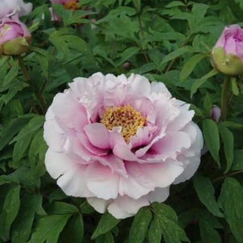 Như bạn có thể thấy trong ảnh, hoa mẫu đơn giống cây này được phân biệt bởi những bụi cây tươi tốt. Giống Pink Zhao Fen là một trong những giống lâu đời nhất vẫn không bị mất đi sự liên quan. Những bông hoa lớn của nó được phân biệt không chỉ bởi màu hồng nhạt mà còn bởi hương thơm tinh tế. Cây bụi cao 2 m, rộng khoảng 1,8 m, đường kính hoa hơn 18 cm.