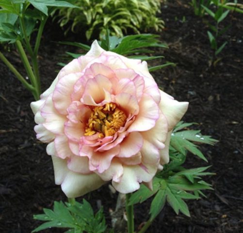 Cây lâu năm giống cây này được phân biệt bởi một bụi cây hình bán cầu nhỏ gọn, chiều cao có thể từ 1 đến 2 m, cây mọc thẳng và chồi dày có thể dễ dàng chịu tải trong thời kỳ ra hoa. Thân cây mẫu đơn có màu nâu nhạt.