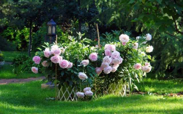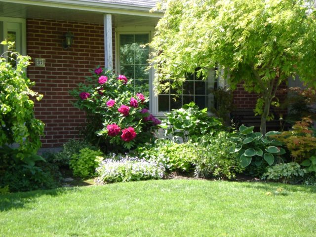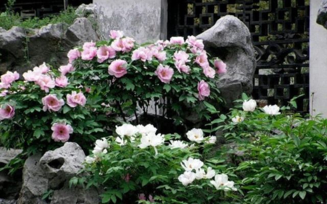 Cây mẫu đơn thuộc loại cây lá gan dài, nếu được chăm sóc đúng cách, cây có thể mọc ở một nơi đến 50 năm. Điều này làm cho nó trở thành một loại cây đầy hứa hẹn trong cảnh quan. Văn hóa này phù hợp để trang trí không chỉ các mảnh đất cá nhân, mà còn cả các công viên và quảng trường. Bức ảnh dưới đây cho thấy hoa mẫu đơn giống cây trông tuyệt vời như thế nào trong khu vườn.
