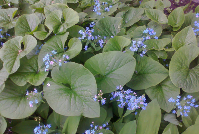 Vỏ bọc gọn gàng của Brunner hòa hợp tốt với các loại cây khác và không bò ra khỏi bãi cỏ