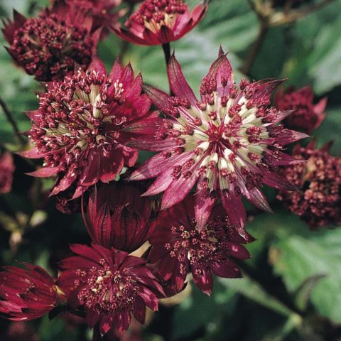 Astrantia Hadspen Blood được phân biệt bởi những chùm hoa màu nâu đỏ hoặc tím sáng. Bụi cây nhỏ gọn - chiều cao lên đến 30-35 cm, và vẫn giữ được kích thước này ngay cả khi trưởng thành. Khác nhau trong thời gian ra hoa tươi tốt và lâu dài. Bắt đầu nở sớm hơn các giống khác.Tốt để cắt.