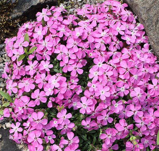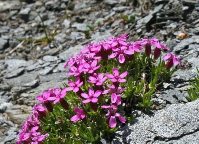 Rubra compacta trong khoảngNó có hoa màu hồng tươi. Văn hóa được sử dụng để trang trí các slide trên núi cao.