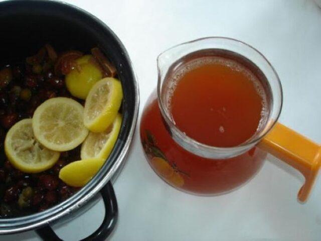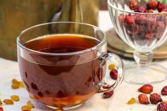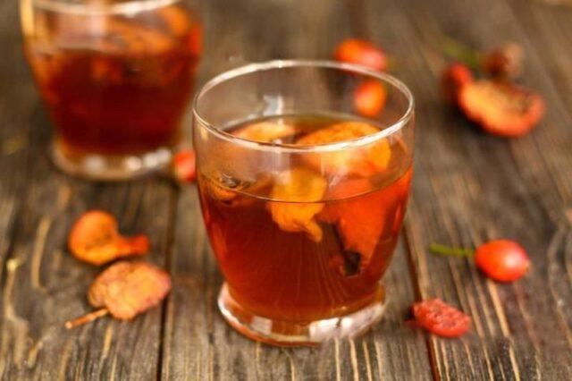 Lọc chất lỏng với hoa hồng hông và trái cây khô. Nhưng bạn có thể để nguyên sản phẩm và sử dụng cùng với hoa quả luộc.