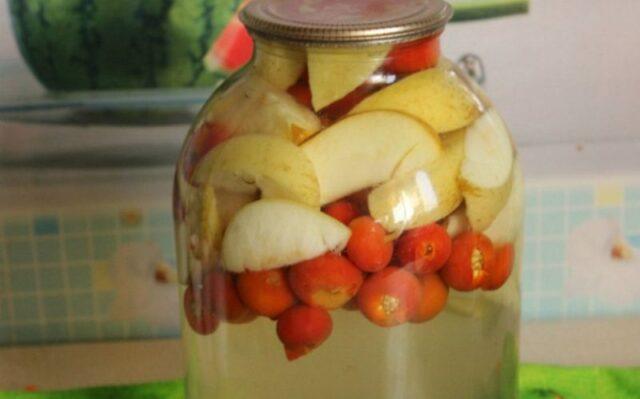 Rowan cho compote với hoa hồng hông có thể dùng được cả chokeberry đỏ và đen