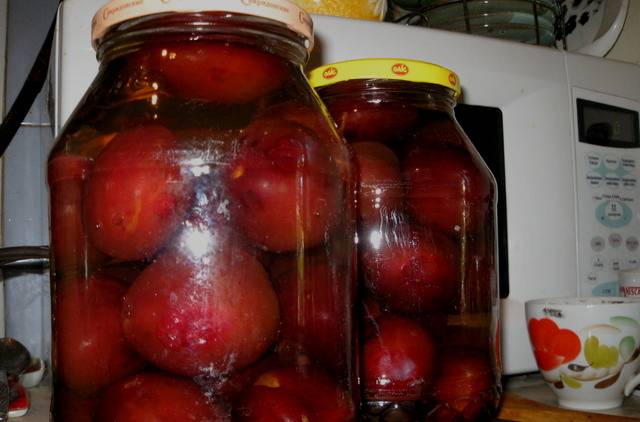 - Đầu tiên một quả mận được đặt dưới đáy lon. Tổng cộng, nó sẽ mất một kg. Cống phải đầy một phần tư thùng chứa.