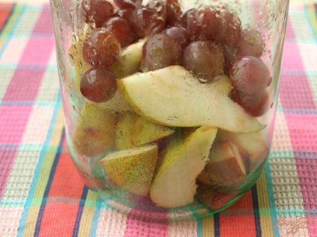Một lựa chọn khác để chuẩn bị compote cho mùa đông là kết hợp nho và lê. Thức uống này chứa nhiều vitamin và sẽ giúp đa dạng hóa chế độ ăn uống mùa đông của bạn. Tốt nhất nên dùng lê chưa chín để không bị nát khi nấu.