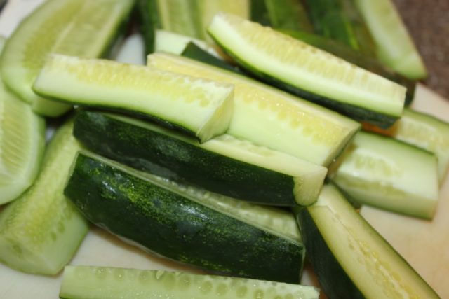 - Cắt dưa chuột thành các phần tư.